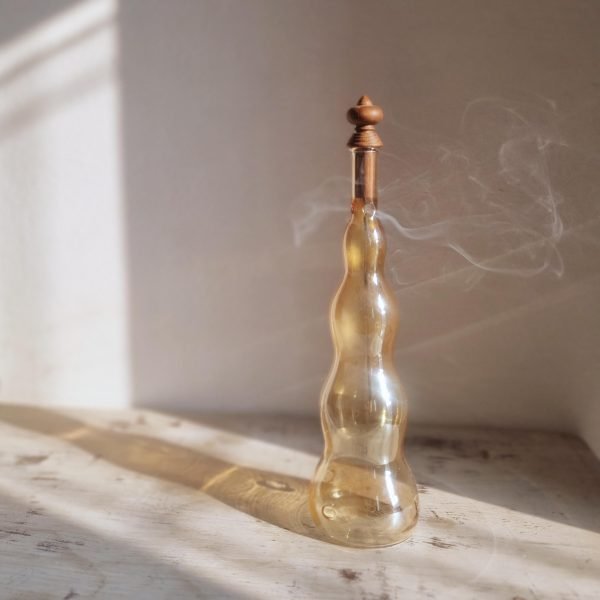 This incense holder is truly a marvel in molten glass. It synthesizes Vedic design concepts with Persian design elements and the final product genuinely captures ones imagination. The process of incense burning becomes a meditation itself – you first spot the color, the form, the fluid design aesthetics, and when the wafts of incense smoke start drifting leisurely out of the pores of the burner, the whole spectacle becomes poetry in motion delighting the senses of sight and smell alike.